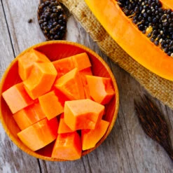 The fruit of the papaya is sweet and can be eaten raw. Use them in jams, jellies, drinks, salad accompaniment, desserts, and candies.